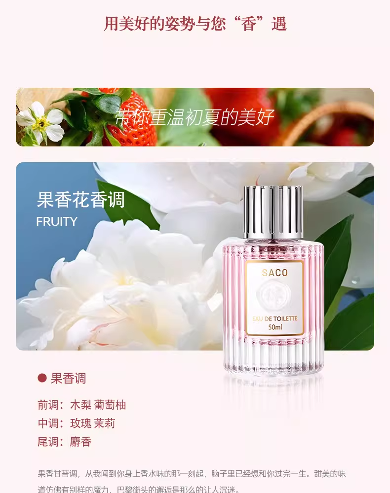 天然香水女士淡香留香持久清新淡雅50ml花香調玫瑰茉莉葡萄柚噴霧