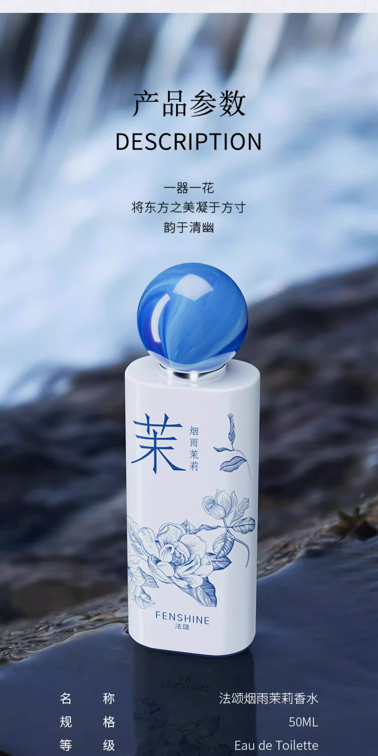 法頌煙雨茉莉香水女士淡香國風青花瓷瓶東方茉莉花香女生學生少女