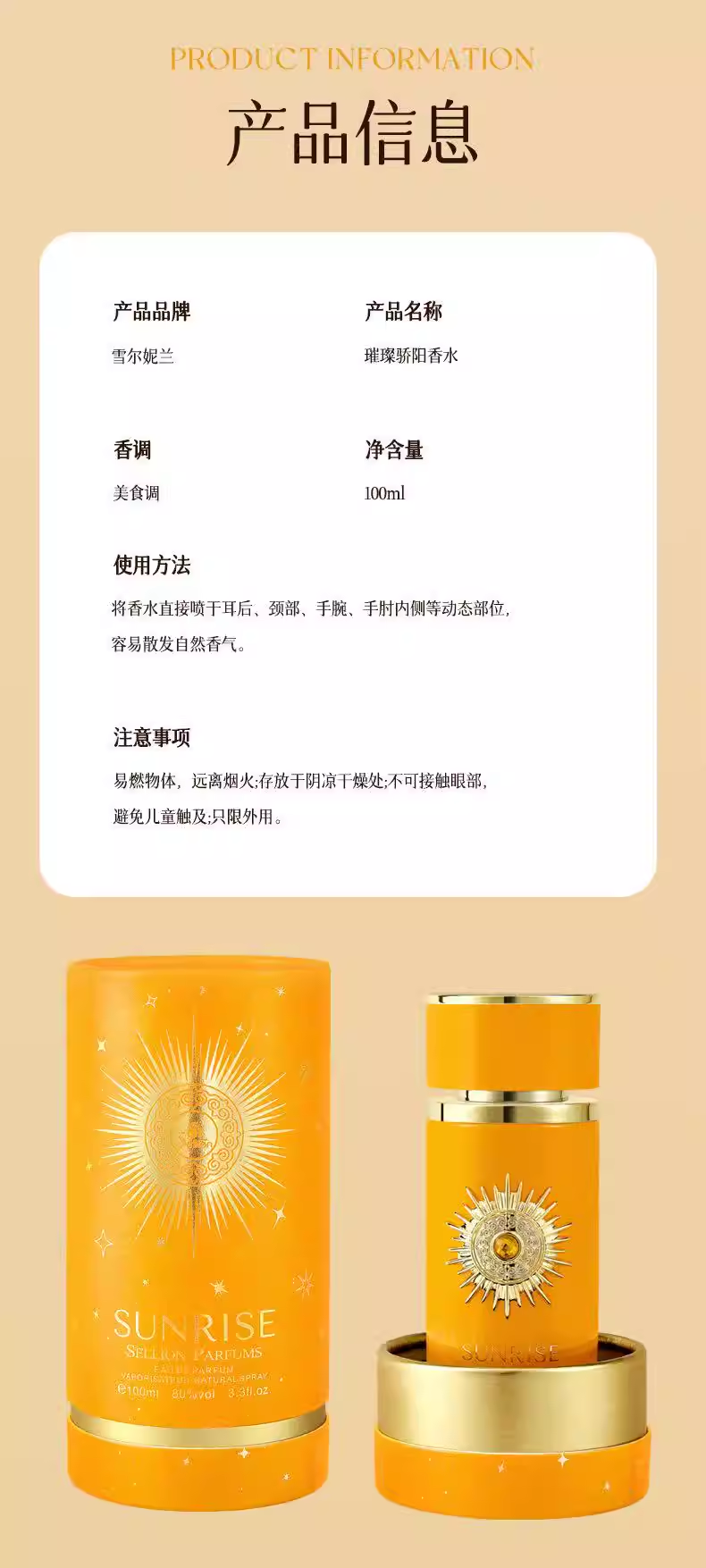 雪爾妮蘭璀璨驕陽香水女士持久淡香留香自然清新日常禮物高檔香精